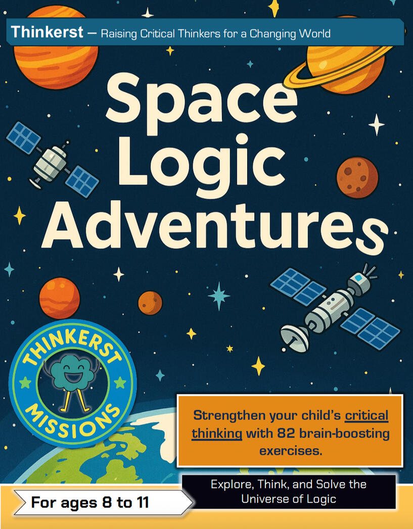 1. Space Logic Adventures - designed for kids 8 to 11 years old, this engaging, space-themed workbook develops logical and holistic thinking through fun, and real-world challenges. Kids will learn to link information, recognize patterns, and approach problems with a big-picture mindset - key skills for future problem-solvers.