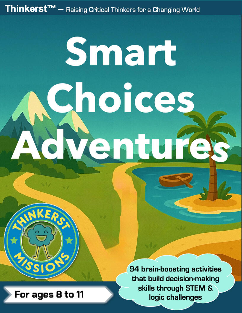 2. Smart Choices Adventures - fun decision-making workbook for kids ages 8–11 that combines real-life thinking skills, STEM challenges, logic puzzles, and eco-friendly activities in one engaging story-based adventure. Most kids’ workbooks are packed with random puzzles that feel disconnected from real life. Smart Choices Adventures is different—it places every challenge in a real-world context where kids’ decisions truly matter.