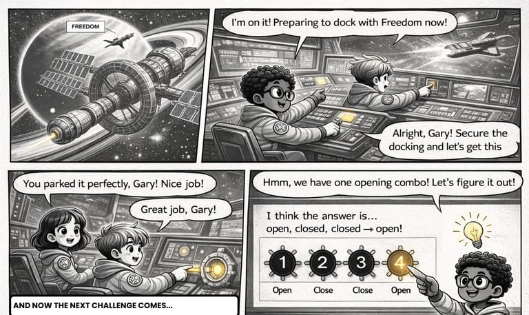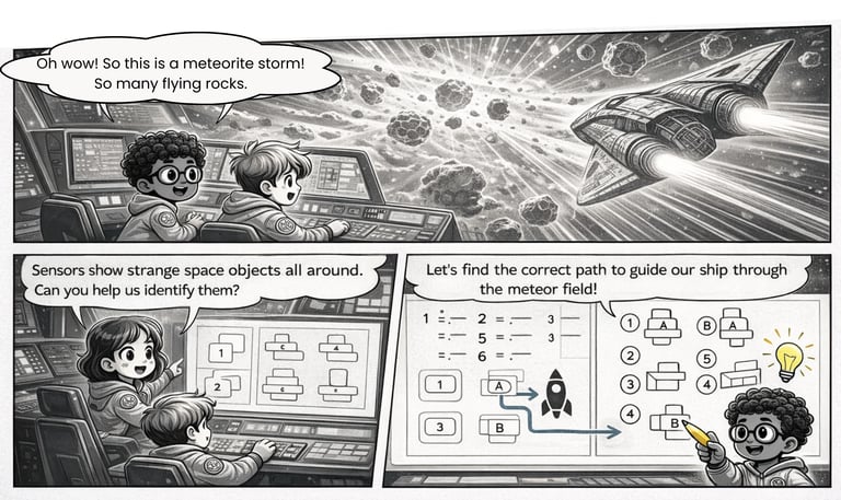 Blast off into a world of learning! This 27-challenge PDF resource turns critical skill-building into an epic mission. Join three space explorers on a story-driven journey designed to sharpen your students’ attention to detail, spatial rotation, and mapping abilities.